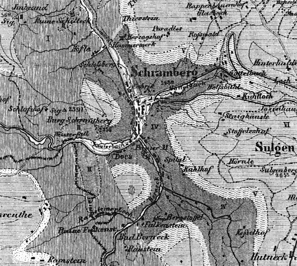 Die zweitletzte Seite der Waller-Chronik (161) verbirgt eine aufklappbare geologische Karte. Im Folgenden ist 1. die Karte als Ganzes dargestellt, 2. ein Ausschnitt vom Imbrand im Nordwesten bis zur Hutneck im Südosten, und 3. die Legende in Vergrößerung.